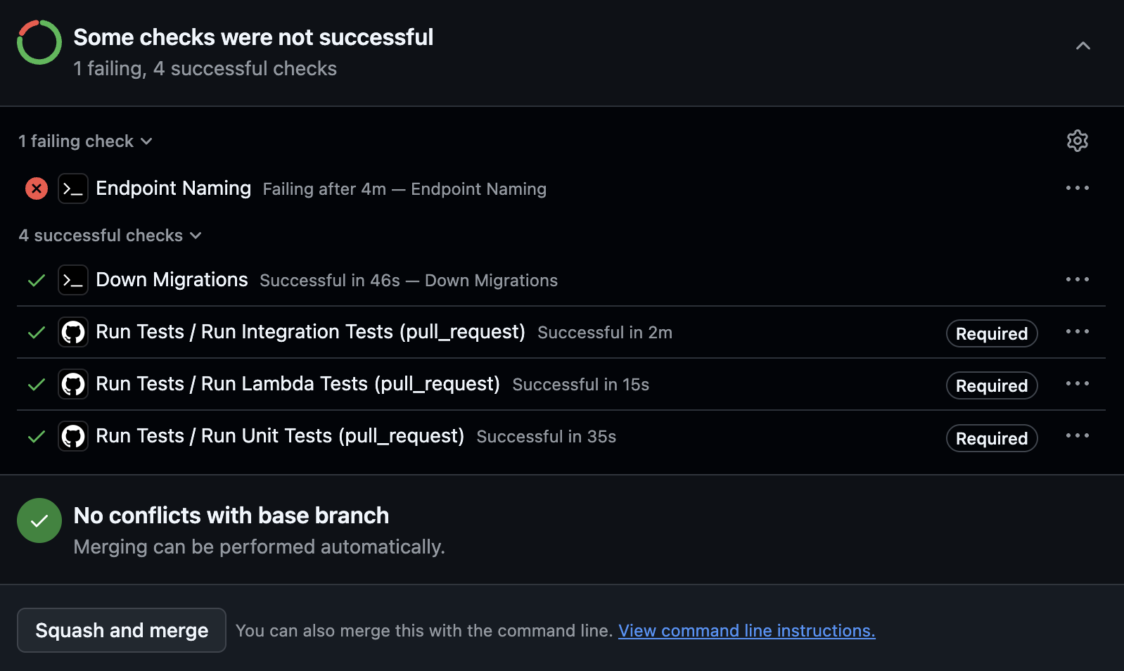 Once the automation is live, it runs automatically on every PR. The check appears alongside your unit tests and integration tests. Mark it as required in your branch protection settings and a failing check prevents merging, the same as any other required check.